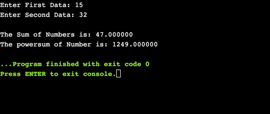 printf("\nThe Sum of Numbers is: %f ",sum);